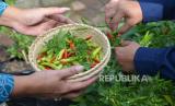 Panen Cabai hasil Buruan SAE (Sehat, Alami, dan Ekonomis), di RW 8, Gang Muhamad Yunus V, Kota Bandung Jawa Barat, Senin (12/2/2024). Keberadaan program urban farming tersebut diharapkan dapat meningkatkan ketahanan pangan di masyarakat dan salah satu upaya mengendalikan inflasi. (FOTO : Edi Yusuf/Republika)