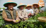 Kepala Dinas Ketahanan Pangan dan Pertanian (DKPP) Kota Bandung, Gin Gin Ginanjar bersama unsur terkait memanen cabai rawit hasil Buruan SAE (Sehat, Alami, dan Ekonomis), di RW 8, Gang Muhamad Yunus V, Kota Bandung Jawa Barat, Senin (12/2/2024). Dalam kesempatan itu dilakukan panen cabai rawit. Keberadaan program urban farming tersebut diharapkan dapat meningkatkan ketahanan pangan di masyarakat dan salah satu upaya mengendalikan inflasi. (FOTO : Edi Yusuf/Republika)