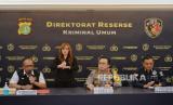 Dirreskrimum Polda Metro Jaya Kombes Wira Satya Triputra, Kabid Humas Polda Metro Jaya Kombes Ade Ary Syam Indradi dan Kasubbid Toksikologi Forensik Puslabfor Bareskrim Polri Kompol Faizal (kiri-kanan) menyampaikan keterangan pers terkait kasus kekerasan terhadap anak dan pembunuhan berencana dengan tersangka Yudha Arfandi di Polda Metro Jaya, Jakarta, Senin (12/2/2024). Dalam konferensi pers tersebut, Ditreskrimum Polda Metro Jaya menerangkan bahwa berdasarkan dari pemantauan CCTV tersangka Yudha Arfandi diduga menenggelamkan Dante (6) anak dari artis Tamara Tyasmara sebanyak 12 kali hingga meninggal dunia. (FOTO : Republika/Thoudy Badai)