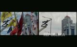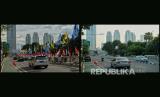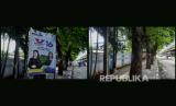 REPUBLIKA.CO.ID, JAKARTA -- Foto perbandingan alat peragam kampanye (APK) terpasang di sejumlah fasilitas umum (kiri) dengan sejumlah fasilitas umum sesudah APK diturunkan petugas Satpol PP (kanan) di ruas jalan Jakarta, Senin (12/2/2024).