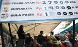Warga antre untuk berbelanja menggunakan Kartu Jakarta Pintar (KJP) di Food Station, Pasar Induk Beras Cipinang, Jakarta Timur, Senin (12/2/2024). Pemerintah Provinsi DKI Jakarta melaksanakan program pangan bersubsidi untuk pemenuhan kebutuhan gizi warga Jakarta dan menjaga stabilitas harga pangan, dimana Food Station Cipinang setiap harinya rata-rata menyiapkan stok pangan untuk 2.000 transaksi warga yang memiliki KJP. (FOTO : ANTARA FOTO/ Fakhri Hermansyah)