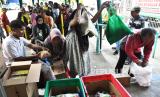 Warga berbelanja menggunakan Kartu Jakarta Pintar (KJP) di Food Station Pasar Induk Beras Cipinang, Jakarta Timur, Senin (12/2/2024). Pemerintah Provinsi DKI Jakarta melaksanakan program pangan bersubsidi untuk pemenuhan kebutuhan gizi warga Jakarta dan menjaga stabilitas harga pangan, dimana Food Station Cipinang setiap harinya rata-rata menyiapkan stok pangan untuk 2.000 transaksi warga yang memiliki KJP. (FOTO : ANTARA FOTO/ Fakhri Hermansyah)