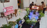 REPUBLIKA.CO.ID, BANDUNG. -- Warga menyiapkan Tempat pemungutan Suara (TPS) bertemakan Bank Sampah di TPS 25, Jalan Lio Genteng, Kelurahan Nyengseret, Kecamatan Astanaanyar, Kota Bandung, Jawa Barat, Selasa (13/2/2024).