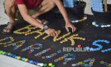 Warga menyiapkan Tempat pemungutan Suara (TPS) bertemakan Bank Sampah di TPS 25, Jalan Lio Genteng, Kelurahan Nyengseret, Kecamatan Astanaanyar, Kota Bandung, Jawa Barat, Selasa (13/2/2024). Untuk menghias TPS warga memanfaatkan barang-barang bekas, dan limbah seperti botol plastik dan kemasan kopi. Pencoblosan Pemilu 2024 akan dilaksanakan pada tanggal 14 Ferbruari 2024. (FOTO : Edi Yusuf/Republika)