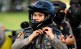 Seorang personel Sabhara patroli motor mengikuti Apel Pergeseran Petugas BKO Pengamanan TPS wilayah Polda Metro Jaya di kawasan silang Monas, Jakarta, Selasa (13/2/2024). Polda Metro Jaya melepas 7.706 personel gabungan TNI dan Polri untuk mengamankan proses pemungutan dan perhitungan surat suara Pemilu 2024 di sebanyak 65.495 Tempat Pemungutan Suara (TPS). (FOTO : ANTARA FOTO/Sulthony Hasanuddin)
