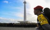 REPUBLIKA.CO.ID, JAKARTA. -- Apel Pergeseran Petugas BKO Pengamanan TPS wilayah Polda Metro Jaya di kawasan silang Monas, Jakarta, Selasa (13/2/2024).