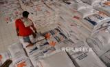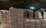 Pekerja melakukan bongkar muat beras di Pasar Induk Beras Cipinang, Jakarta Timur, Selasa (13/2/2024). Presiden Joko Widodo mengintruksikan pasokan beras di pasar induk beras Cipinang untuk segera didistribusikan ke sejumlah pasar tradisional dan modern. Sementara menurut Kepala Badan Pangan Nasional (Bapanas) Arief Prasetyo Adi, stok beras di Pasar Cipinang saat ini masih cukup tinggi, yakni di atas 34 ribu ton. Sekjen DPP Ikatan Pedagang Pasar Indonesia (IKAPPI) Reynaldi Sarijowan mencatat bahwa kenaikan harga beras saat ini memecahkan rekor tertinggi yakni Rp13.500 per kilogram untuk beras medium dan Rp18.500per kilogram untuk beras premium. (FOTO : Republika/Thoudy Badai)