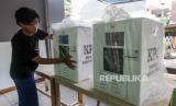 Warga menyimpan kotak suara di salah satu TPS di kawasan Srengseng Sawah, Jakarta Selatan, Selasa (13/2/2024). Sebanyak 800 kotak suara beserta logistik lainnya didistribusikan untuk 200 tempat pemungutan suara (TPS) di 19 RW wilayah Srengseng Sawah. (FOTO : Republika/Putra M. Akbar)