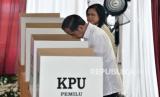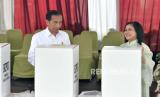 REPUBLIKA.CO.ID, JAKARTA. -- Presiden Joko Widodo bersama Ibu Negara Iriana Joko Widodo menggunakan hak pilihnya di Tempat Pemungutan Suara (TPS) 10 Kelurahan Gambir di kompleks Kantor Lembaga Administrasi Negara (LAN), Jakarta, Rabu (14/2/2024).