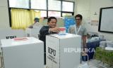 Menteri Badan Usaha Milik Negara (BUMN) Erick Thohir hadir ke Tempat Pemungutan Suara (TPS) 17 yang belokasi di SD 05 Kebon Baru, Jl. Gudang Peluru, Jakarta Timur, Rabu (14/2/2024) untuk menggunakan hak suaranya dalam Pemilihan Umum (Pemilu) tahun ini. Erick datang pada pukul 8.28 WIB bersama sang Isteri Elizabeth Tjandra dan dua anaknya memakai kaos berkerah dan jaket biru navy dan celana jeans. (FOTO : Dok. Republika)