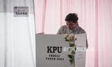 Calon Wakil Presiden nomor urut 2 Gibran Rakabuming Raka berada dibilik suara untuk menggunakan hak pilihnya di TPS 34 di Manahan, Solo, Jawa Tengah, Rabu (14/2/2024). Pemilu 2024 untuk memilih Presiden dan Wakil Presiden, anggota DPR, DPD, DPRD Kabupaten/Kota tersebut dilaksanakan secara serentak di 38 provinsi dengan jumlah DPT sebanyak 204.807.222 pemilih. (FOTO : ANTARA FOTO/Mohammad Ayudha)