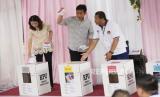 Gibran bersama istrinya mencoblos di TPS 34 Manahan Solo, Rabu (14/2/2024). (FOTO : Republika/Alfian Choir)