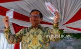 REPUBLIKA.CO.ID, SLEMAN. -- Cawapres nomor urut 3 Mahfud MD menunjukkan surat suara pemilihan Pemilu 2024 saat menngunakan hak pilihnya di TPS 106 Sambilegi Lor, Maguwoharjo, Depok, Sleman, D.I Yogyakarta, Rabu (14/2/2024).