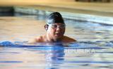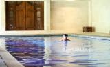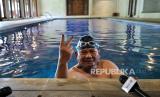 Capres nomor urut 2, Prabowo Subianto berenang di kediamannya di Bukit Hambalang, Desa Bojong Koneng, Babakan Madang, Kabupaten Bogor, Jawa Barat, tak berselang lama usai mencoblos di TPS dekat rumahnya itu, Rabu (14/2/2024). (FOTO : Dok. Republika)