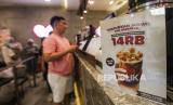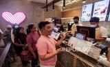 Pekerja melayani warga yang mengantre untuk mendapatkan potongan harga di salah satu gerai makanan, Mal Kota Kasablanka, Jakarta, Rabu (14/2/2024). Sejumlah gerai makanan dan fashion di pusat perbelanjaan tersebut memberikan promo Pemilu 2024 dengan menunjukan jari kelingking yang bertinta ungu sebagai bukti telah melakukan pencoblosan. Program promo potongan harga tersebut untuk menggaet partisipasi Pemilu 2024 dan menekan angka golongan putih. (FOTO : Republika/Putra M. Akbar)