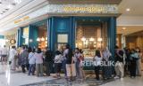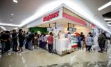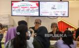 Warga mengantre untuk mendapatkan potongan harga di salah satu gerai makanan, Mal Kota Kasablanka, Jakarta, Rabu (14/2/2024). Sejumlah gerai makanan dan fashion di pusat perbelanjaan tersebut memberikan promo Pemilu 2024 dengan menunjukan jari kelingking yang bertinta ungu sebagai bukti telah melakukan pencoblosan. Program promo potongan harga tersebut untuk menggaet partisipasi Pemilu 2024 dan menekan angka golongan putih. (FOTO : Republika/Putra M. Akbar)
