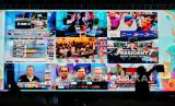 Pendukung paslon capres dan cawapres nomor urut 2 Prabowo Subianto dan Gibran Rakabuming Raka meninjau hitung cepat Pilpres 2024 dalam acara Mengawal Suara Rakyat, Pidato Prabowo Gibran di Istora Senayan, Jakarta, Rabu (14/2/2024). Berdasarkan quick count atau hitung cepat yang dilakukan Poltracking Indonesia dan Charta Politika pada Rabu pukul 20.15 dengan jumlah total suara sementara yang masuk sebesar 90 persen, Prabowo-Gibran unggul dengan memperoleh 59,22 persen suara disusul Anies-Muhaimin 24,43 persen suara dan Ganjar-Mahfud 16,35 persen suara. (FOTO : Republika/Thoudy Badai)