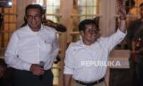 REPUBLIKA.CO.ID, JAKARTA -- Calon presiden dan calon wakil presiden nomor urut 01, Anies Baswedan dan Muhaimin Iskandar, menyapa pendukung sebelum menyampaikan keterangan pers di posko pemenangan di Jalan Diponegoro, Menteng, Jakarta, Rabu (14/2/2024). Pada keterangan pers tersebut, Anies dan Muhaimin menyampaikan masih menunggu keputusan resmi rekapitulasi penghitungan suara dan akan menghormati hasil akhir yang dikeluarkan dari KPU.