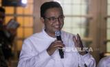 Calon Presiden nomor urut 1 Anies Baswedan menyampaikan keterangan pers di posko pemenangan di Jalan Diponegoro, Menteng, Jakarta, Rabu (14/2/2024). Pada keterangan pers tersebut Anies dan Muhaimin menyampaikan masih menunggu keputusan resmi rekapitulasi penghitungan suara dan akan menghormati hasil akhir yang dikeluarkan dari KPU. (FOTO : Republika/Putra M. Akbar)