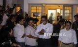 Calon Presiden dan Calon Wakil Presiden nomor urut 1 Anies Baswedan dan Muhaimin Iskandar menyapa pendukung sebelum menyampaikan keterangan pers di posko pemenangan di Jalan Diponegoro, Menteng, Jakarta, Rabu (14/2/2024). Pada keterangan pers tersebut Anies dan Muhaimin menyampaikan masih menunggu keputusan resmi rekapitulasi penghitungan suara dan akan menghormati hasil akhir yang dikeluarkan dari KPU. (FOTO : Republika/Putra M. Akbar)