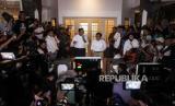 Calon Presiden dan Calon Wakil Presiden nomor urut 1 Anies Baswedan dan Muhaimin Iskandar menyampaikan keterangan pers di posko pemenangan di Jalan Diponegoro, Menteng, Jakarta, Rabu (14/2/2024). Pada keterangan pers tersebut Anies dan Muhaimin menyampaikan masih menunggu keputusan resmi rekapitulasi penghitungan suara dan akan menghormati hasil akhir yang dikeluarkan dari KPU. (FOTO : Republika/Putra M. Akbar)