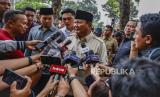 Capres Prabowo Subianto menjawab pertayaan media saat menziarahi makam bapaknya, Soemitro Djojohadikusumo di TPU Karet Bivak, Jakarta Pusat, Kamis (15/2/2024). (FOTO : EPA)