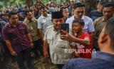 Capres Prabowo Subianto berswafoto dengan warga saat menziarahi makam bapaknya, Soemitro Djojohadikusumo di TPU Karet Bivak, Jakarta Pusat, Kamis (15/2/2024). (FOTO : EPA)