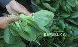 Pekerja mengemas sayuran pokcoy di kebun hidroponik Zakina Farm, Malang, Jawa Timur, Kamis (15/2/2024). Petani milenial setempat menggunakan teknologi hidroponik untuk menanam sayuran di lahan seluas 1.800 meter persegi di kawasan perkotaan yang mampu memproduksi sekitar 50 kilogram per hari berbagai jenis sayuran seperti selada, pokcoy serta sawi untuk dijual ke sejumlah restoran maupun pusat perbelanjaan dengan harga Rp15 ribu hingga Rp25 ribu per kilogram tergantung jenis sayuran. (FOTO : ANTARA FOTO/Ari Bowo Sucipto/)