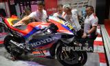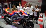 Presiden Direktur PT Astra Honda Motor (AHM) Susumu Mitsuishi (kedua kanan) bersama Executive Vice President Director AHM Thomas Wijaya (kedua kiri) dan Marketing Director AHM Octavianus Dwi Putro (kanan) melihat motor motor balap tim Repsol Honda Team usai memperkenalkan pebalap Astra Honda Racing Team dalam Indonesian International Motor Show (IIMS) 2024 di JIExpo Kemayoran, Jakarta, Kamis (15/2/2024). PT Astra Honda Motor mengumumkan 11 pebalap muda Astra Honda Racing Team untuk 2024 dan selama musim balap 2024 logo One Heart dan Satu Hati akan tertulis pada jersey pebalap dan motor balap tim Repsol Honda Team serta Honda Racing Corporation di ajang MotoGP, WSBK, dan MXGP. (FOTO : Dok Republika)