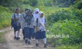 REPUBLIKA.CO.ID, MENTAWAI -- Sejumlah pelajar SMP berjalan kaki sepulang sekolah di Dusun Ugai, Desa Madobag, Siberut Selatan, Kabupaten Kepulauan Mentawai, Sumatera Barat, Kamis (15/2/2024). Pelajar di daerah tersebut harus berjalan kaki hingga dua jam untuk pergi atau pulang dari sekolah mereka di pedalaman karena ketiadaan transportasi umum.