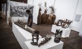 REPUBLIKA.CO.ID, ASMAT -- Seorang pengunjung melihat koleksi Museum Kebudayaan dan Kemajuan Asmat di Distrik Agats, Kabupaten Asmat, Papua Selatan, Kamis (15/2/2024). Museum yang didirikan pada tahun 1973 itu memiliki 1.200 koleksi yang berasal dari seluruh pelosok Asmat, seperti tifa, perisai, tombak, dan patung.