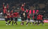 Ekspresi pemain Rennes setelah kalah pada pertandingan sepak bola leg pertama play-off Liga Europa antara AC Milan dan Rennes di Stadion San Siro, Milan, Italia, Jumat (16/2/2024) WIB. AC Milan mengalahkan Rennes dengan skor 3-0. (FOTO : AP Photo/Antonio Calanni)