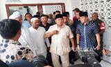Calon Presiden nomor urut 2 Parbowo Subianto melakukan ziarah ke makam Habib Ali Kwitang di Masjid Al Riyadh, Kwitang, Jakarta Pusat, Jumat (16/2/2024) siang. Prabowo juga melakukan silaturahmi dengan Habib Ali bin Habib Abdurrahman bin Muhammad bin Ali Al Habsy yang merupakan cicit dari Habib Kwitang. (FOTO : Republika/Febryan A)