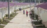 REPUBLIKA.CO.ID, CIANJUR -- Warga melintas di rumah relokasi penyintas gempa di Babakankaret, Cianjur, Jawa Barat, Jumat (16/2/2024). Kementerian PUPR menyelesaikan pembangunan 190 unit hunian tetap di atas lahan seluas 2,7 hektare, yang merupakan rumah relokasi tahap III bagi penyintas gempa Cianjur.