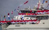 REPUBLIKA.CO.ID, KEPRI -- Sejumlah prajurit TNI AL mengikuti upacara Peresmian dan Pengukuhan Komandan Kapal Angkatan Laut (KAL) Sembulungan dan Hinako di PT Citra Shipyard Batam, Kepulauan Riau, Jumat (16/2/2024).