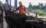 REPUBLIKA.CO.ID, JAKARTA -- Petugas merapikan pupuk kompos yang diolah dari sampah bekas alat peraga kampanye di tempat penyaringan sampah TB Simatupang, Jakarta, Jumat (16/2/2024).