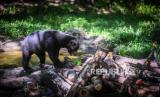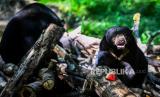 Seekor beruang madu (Helarctos malayanus) mencari makan di tempat konservasi Kawasan Wisata Pendidikan Lingkungan Hidup (KWPLH) Balikpapan, Kalimantan Timur, Jumat (16/2/2024). Dinas Kehutanan Provinsi Kalimantan Timur mendirikan KWPLH Balikpapan sebagai tempat konservasi bagi beruang madu yang disita Balai Konservasi Sumber Daya Alam (BKSDA) dari penduduk yang memelihara beruang madu secara ilegal, tetapi tidak dapat dilepaskan karena cacat akibat jerat atau mengalami perubahan prilaku. (FOTO : ANTARA FOTO/ Rivan Awal Lingga)