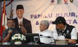 REPUBLIKA.CO.ID, JAKARTA -- Dewan Pakar Timnas Anies-Muhaimin (Amin) Bambang Widjojanto, Deputi Hubungan Antarlembaga Putra Jaya Husain, Juru Bicara Timnas Amin Refly Harun, dan Tim IT Timnas Amin Aditya Halimawan memberikan keterangan kepada wartawan terkait aplikasi Sistem Informasi Rekapitulasi (Sirekap) KPU di Rumah Koalisi Perubahan, Jakarta, Jumat (16/2/2024).