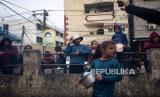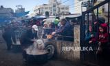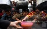 REPUBLIKA.CO.ID, RAFAH -- Anak-anak dan warga Palestina antre untuk mendapatkan makanan gratis di Rafah, Jalur Gaza, Jumat (16/2/2024). Badan bantuan internasional mengatakan Gaza menderita kekurangan makanan, obat-obatan, dan pasokan pokok lainnya akibat perang antara Israel dan Hamas.