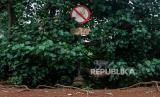 Seekor monyet ekor panjang (Macaca fascicularis) berada di dekat plang larangan memberi makan di Kapuk Muara, Penjaringan, Jakarta Utara, Sabtu (17/2/2024). Meskipun sudah ada imbauan untuk tidak memberikan makan kepada satwa tersebut namun masih terdapat warga yang melanggar aturan tersebut. Pemberian makan monyet ekor panjang secara sembarang dapat berdampak kepada perilaku monyet ekor panjang setempat karena lebih memilih makan di luar wilayah margasatwa. (FOTO : Republika/Putra M. Akbar)