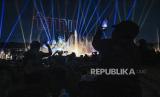 REPUBLIKA.CO.ID, JAKARTA. -- Pengunjung menyaksikan pertunjukan air mancur menari dan atraksi formasi drone di danau Archipelago, Taman Mini Indonesia Indah (TMII), Jakarta, Ahad (18/2/2024).