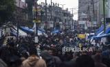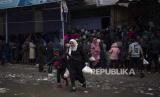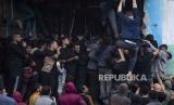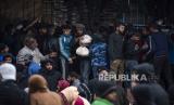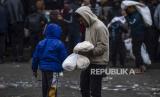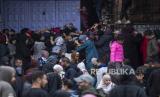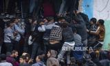 REPUBLIKA.CO.ID,  RAFAH. --  Warga Palestina berjuang untuk membeli roti dari toko roti di Rafah, Jalur Gaza, Ahad, (18/2/2024).