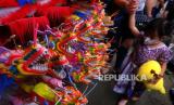 Seorang anak melihat deretan boneka mainan naga saat pembukaan Festival Cap Go Meh di Jalan Diponegoro, Pontianak, Kalimantan Barat, Ahad (18/2/2024).Festival Cap Go Meh 2575 yang digelar pada tahun Naga Kayu selama sepekan ke depan tersebut disemarakkan dengan pentas seni dan budaya Tionghoa setempat serta pasar kuliner khas Pontianak. (FOTO : ANTARA FOTO/Jessica Wuysang)