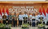 Menteri Pertahanan Prabowo Subianto menyampaikan sambutan saat akan meresmikan Rumah Sakit Pusat Pertahanan Negara (RSPPN) Panglima Besar Soedirman dan 20 rumah sakit milik TNI di Jakarta, Senin (19/2/2024). Kementerian Pertahanan meresmikan sebanyak 20 rumah sakit milik TNI yang terdiri dari 11 Rumah Sakit Angkatan Darat (RSAD), 3 Rumah Sakit Angkatan Laut (RSAL) dan 6 Rumah Sakit Angkatan Udara (RSAU). Pembangunan fasilitas kesehatan tersebut diharapkan dapat memenuhi kebutuhan kesehatan bagi anggota Kemhan atau TNI beserta keluarganya dan masyarakat umum agar dapat terpenuhi. (FOTO : Republika/Thoudy Badai)