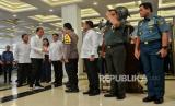 REPUBLIKA.CO.ID, JAKARTA -- Presiden Joko Widodo disambut Menteri Pertahanan Prabowo Subianto saat akan meresmikan Rumah Sakit Pusat Pertahanan Negara (RSPPN) Panglima Besar Soedirman dan 20 rumah sakit milik TNI di Jakarta, Senin (19/2/2024).