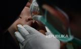 Petugas kesehatan menyiapkan vaksin polio saat pelaksanaan Sub Pekan Imunisasi Nasional (Sub PIN) Polio di Kota Madiun, Jawa Timur, Senin (19/2/2024). Imunisasi yang dilaksanakan pada 19-25 Februari itu merupakan putaran kedua yang menyasar kepada sekitar 18 ribu anak hingga usia delapan tahun di wilayah tersebut untuk memberikan kekebalan pada anak sekaligus upaya menanggulangi Kejadian Luar Biasa (KLB) polio menyusul penemuan kasus lumpuh layu di Pamekasan, Sampang Jawa Timur serta Klaten Jawa Tengah beberapa waktu lalu. (FOTO : ANTARA FOTO/Siswowidodo)