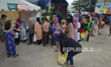REPUBLIKA.CO.ID, BANDUNG -- Warga antre membeli beras di operasi pasar beras Medium SPHP Bulog, yang digelar Dinas Perdagangan dan Perindustrian (Disdagin) Kota Bandung di Taman Film, Tamansari, Kota Bandung, Jawa Barat, Senin (19/2/2024).