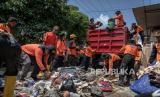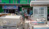 Relawan membersihkan jalan desa dari sampah serta barang warga yang hanyut karena banjir di Desa Karanganyar, Kabupaten Demak, Jawa Tengah, Selasa (20/2/2024). Ratusan personel dari TNI-Polri, BPBD Kabupaten Demak, lintas instansi dan relawan dari berbagai komunitas bergotong royong melaksanakan karya bhakti pembersihan sejumlah fasilitas umum seperti sekolahan, puskesmas, polsek, dan koramil dan jalan desa setempat guna membantu percepatan penanganan banjir di Kabupaten Demak pada hari ke tiga belas akibat jebolnya Sungai Wulan-Jratun pada Kamis (8/2) lalu. (FOTO : ANTARA FOTO)
