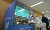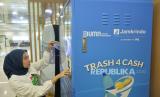 Pegawai Jamkrindo mencoba mesin penukaran sampah botol plastik saat peluncuran program Trash4Cash di Gedung Jamkrindo, Kemayoran, Jakarta, Rabu (21/2/2024). Sebagai salah satu strategi untuk meningkatkan keterlibatan pegawai dalam penerapan prinsip-prinsip ESG, Jamkrindo berkolaborasi dengan Republika dan Plastic Pay meluncurkan program Trash4Cash. Peluncuran tersebut dilakukan bertepatan dengan Hari Peduli Sampah Nasional yang jatuh pada 21 Februari 2024. (FOTO : Republika/Prayogi)