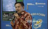 Direktur Utama PT Jamkrindo Akhmad Purwakajaya memberikan sambutan saat peluncuran program Trash4Cash di Gedung Jamkrindo, Kemayoran, Jakarta, Rabu (21/2/2024). Sebagai salah satu strategi untuk meningkatkan keterlibatan pegawai dalam penerapan prinsip-prinsip ESG, Jamkrindo berkolaborasi dengan Republika dan Plastic Pay meluncurkan program Trash4Cash. Peluncuran tersebut dilakukan bertepatan dengan Hari Peduli Sampah Nasional yang jatuh pada 21 Februari 2024. (FOTO : Republika/Prayogi)